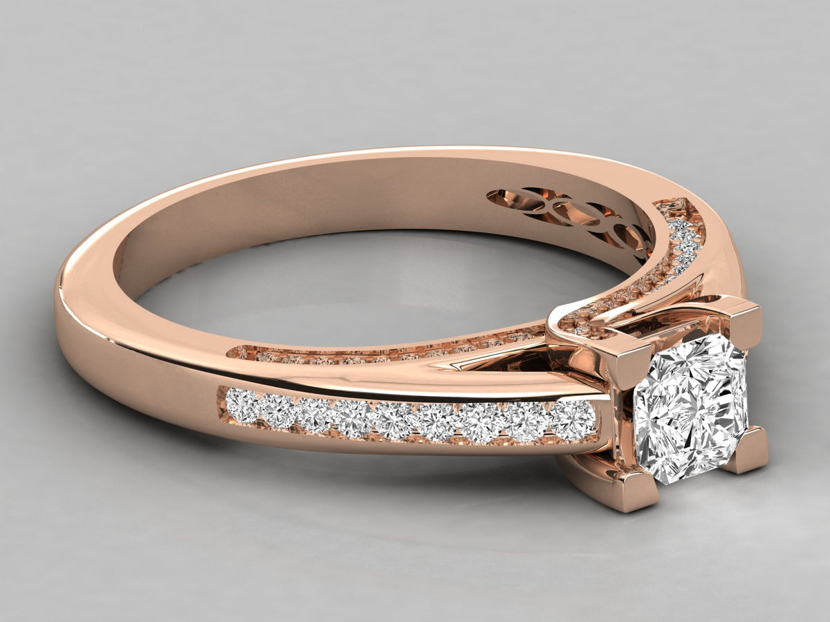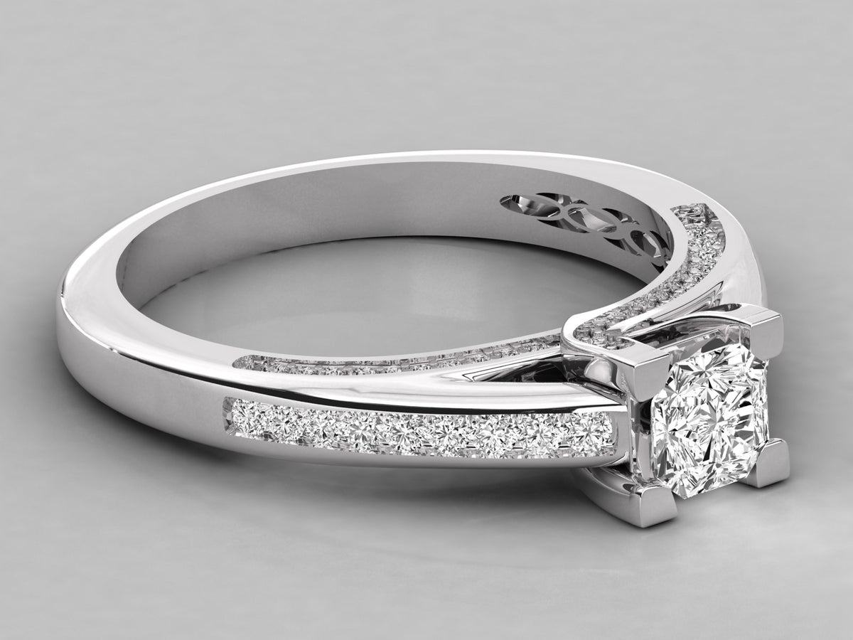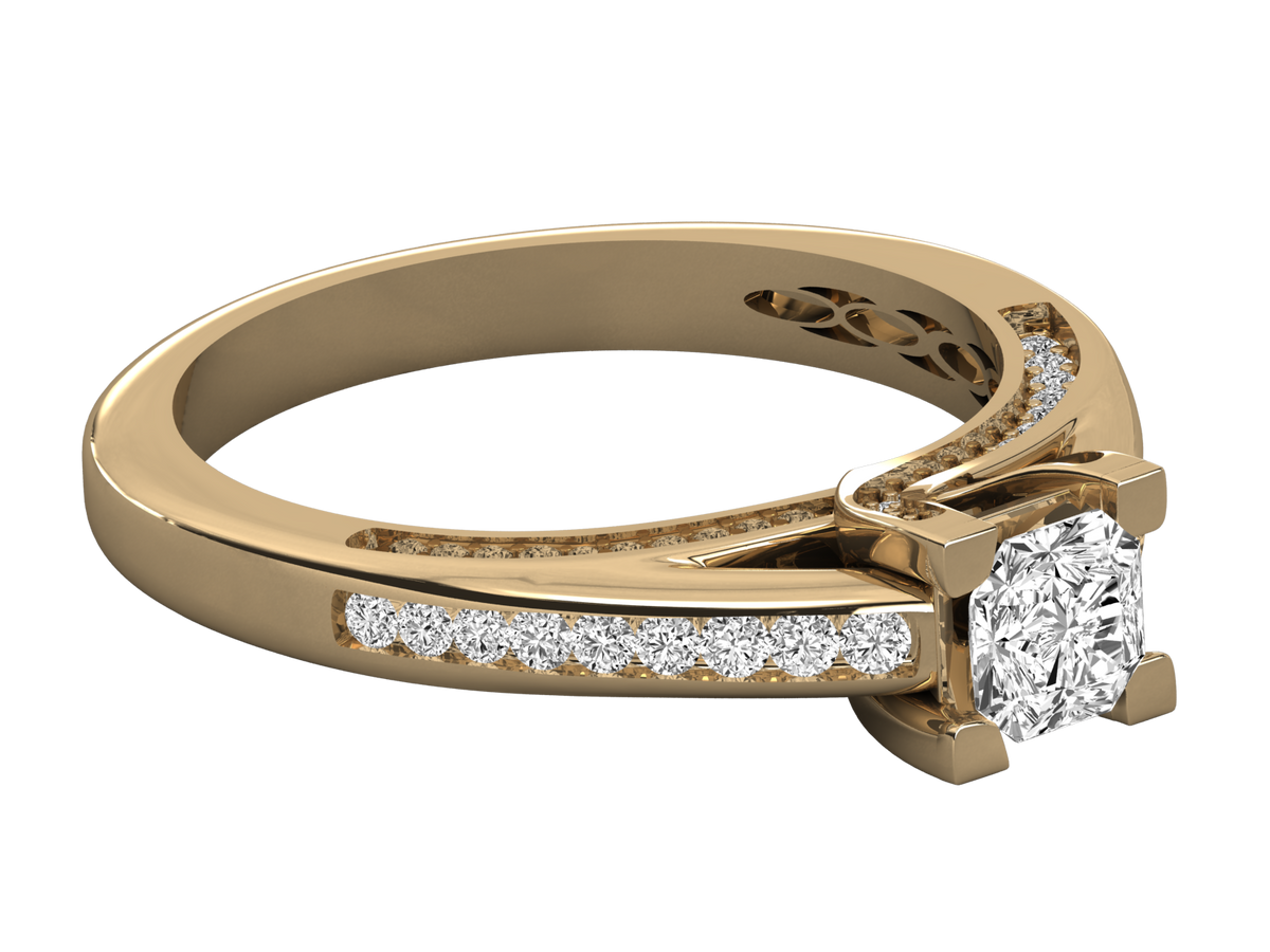 10K GOLD SOLITAIRE ROUND/ PRINCESS CUT LAB GROWN DIAMOND LADIES BRILLIANT RING.