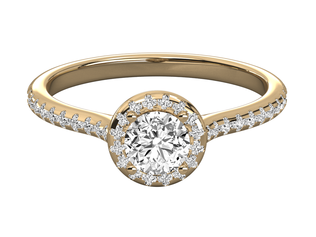 9K GOLD ROUND FACETED LAB GROWN DIAMOND RING