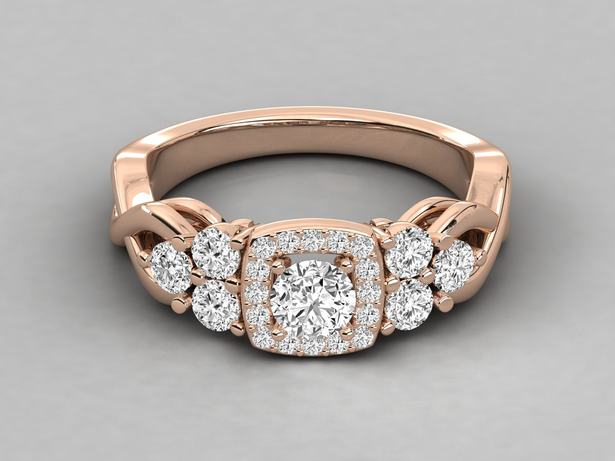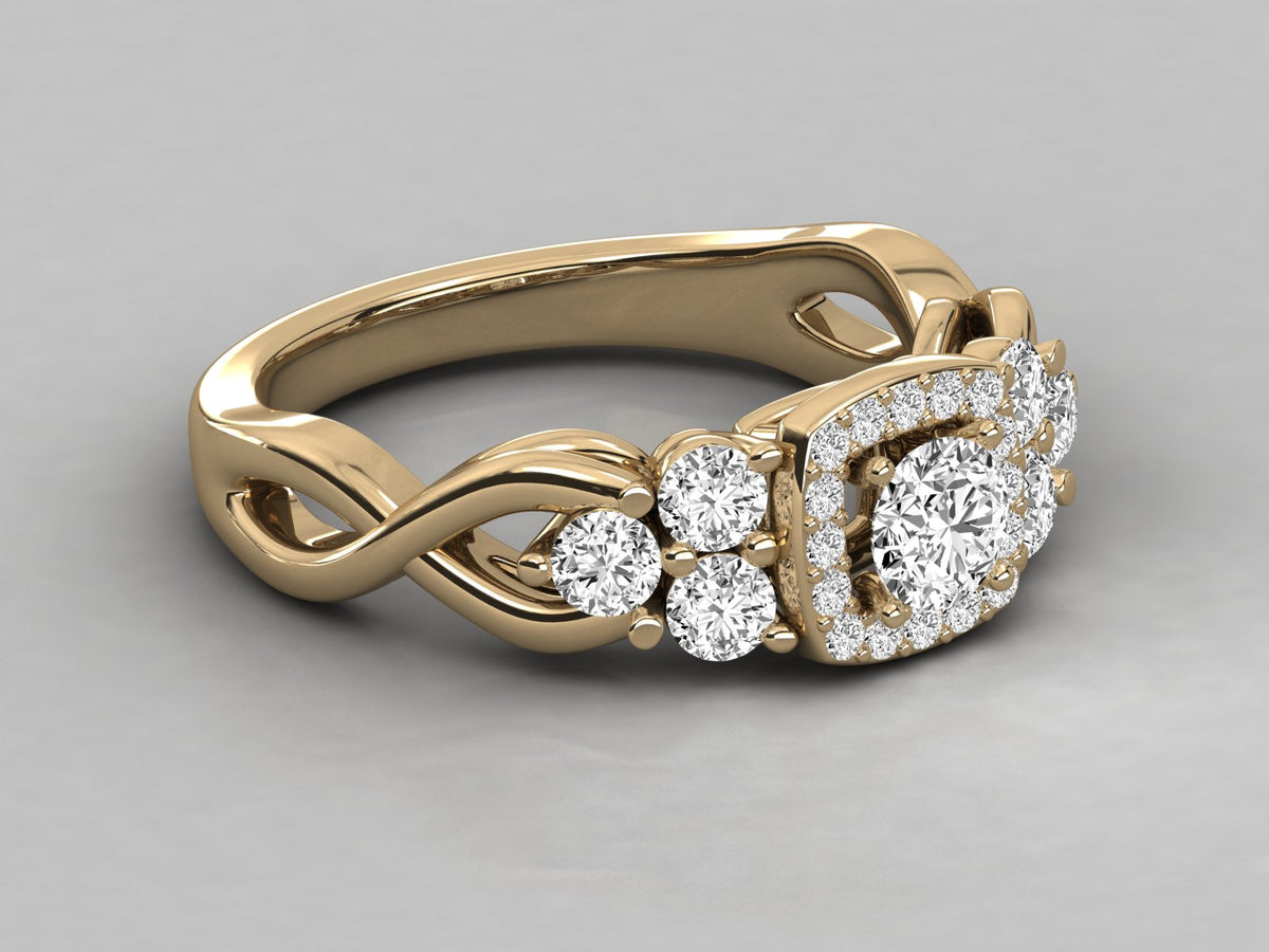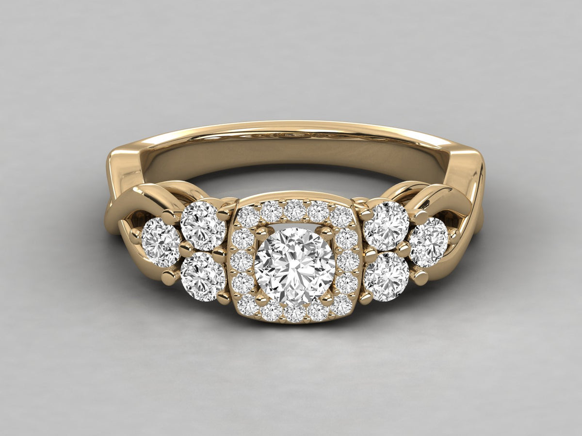9K GOLD ROUND FACETED LAB GROWN DIAMOND RING