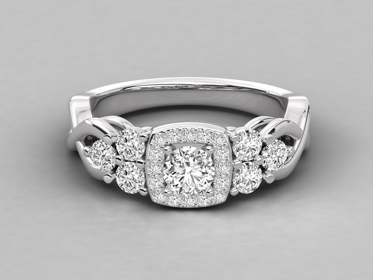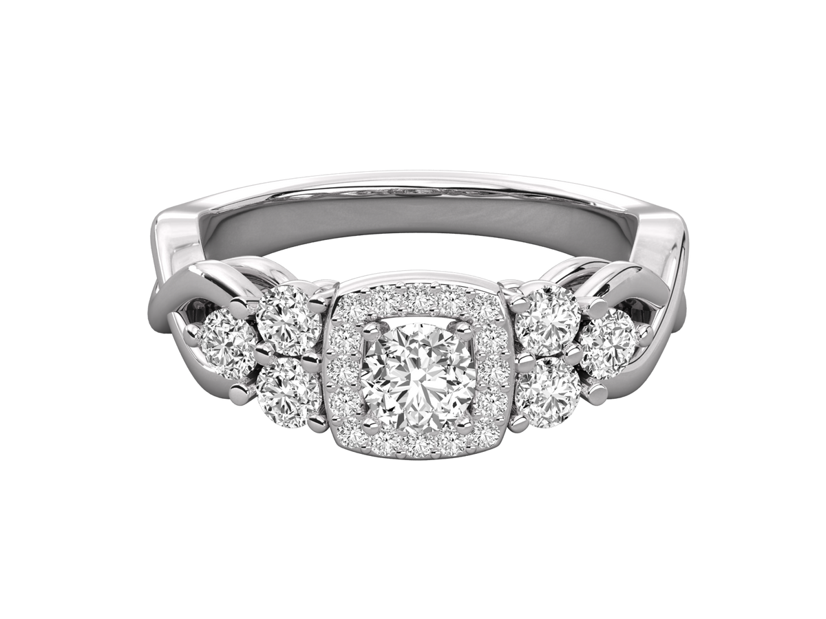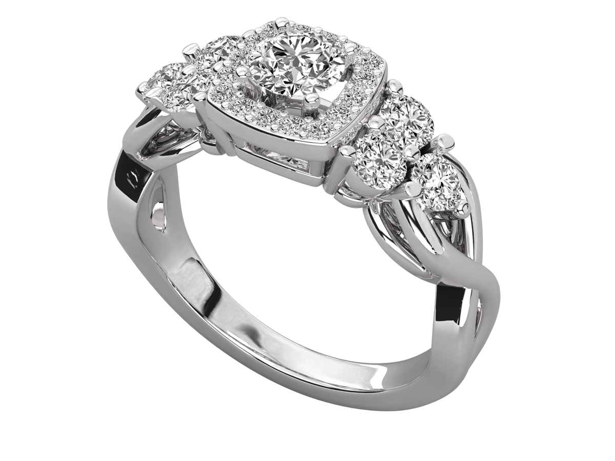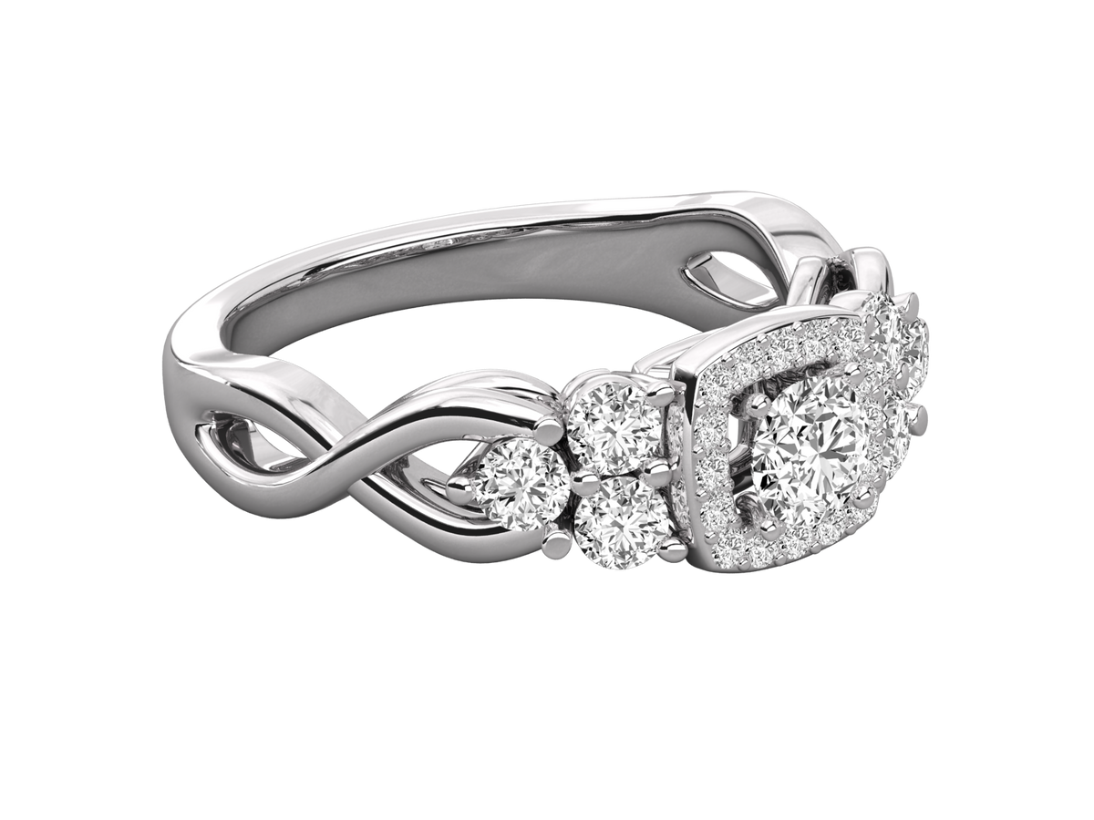 9K GOLD ROUND FACETED LAB GROWN DIAMOND RING