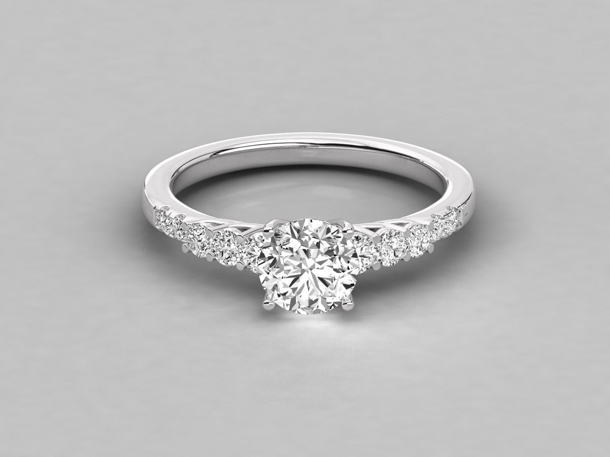 9K GOLD SOLITAIRE ROUND CUT LAB GROWN DIAMOND LADIES BRILLIANT RING.