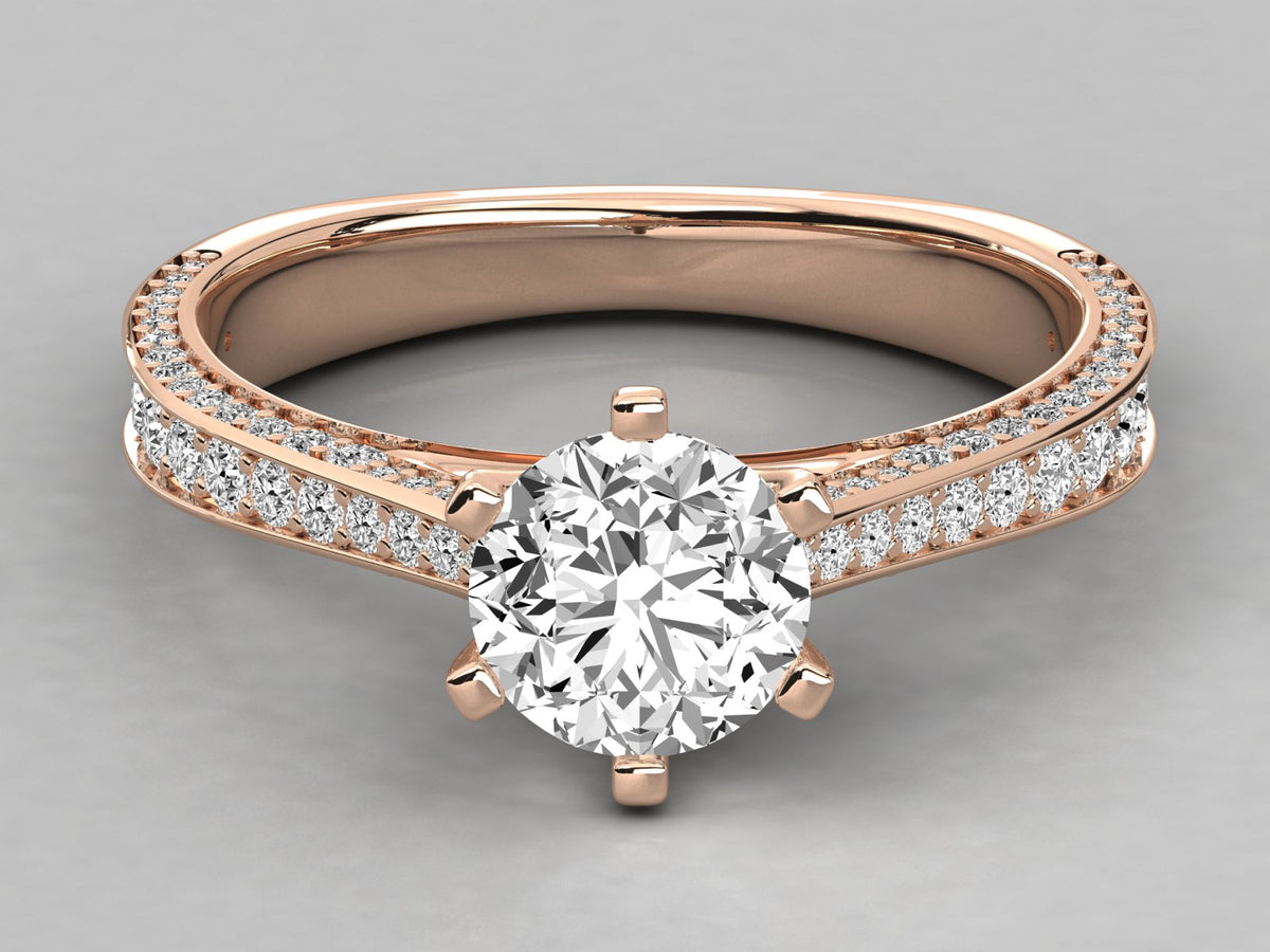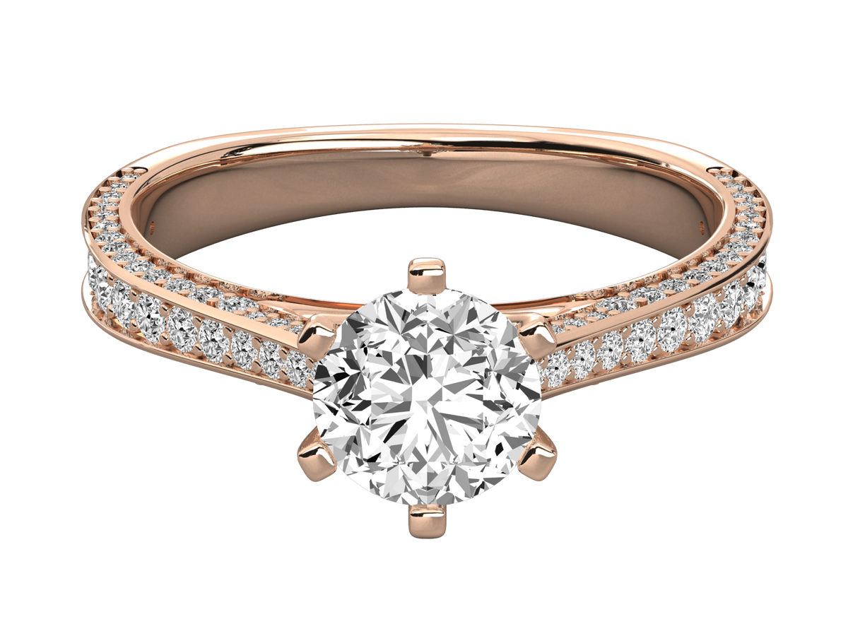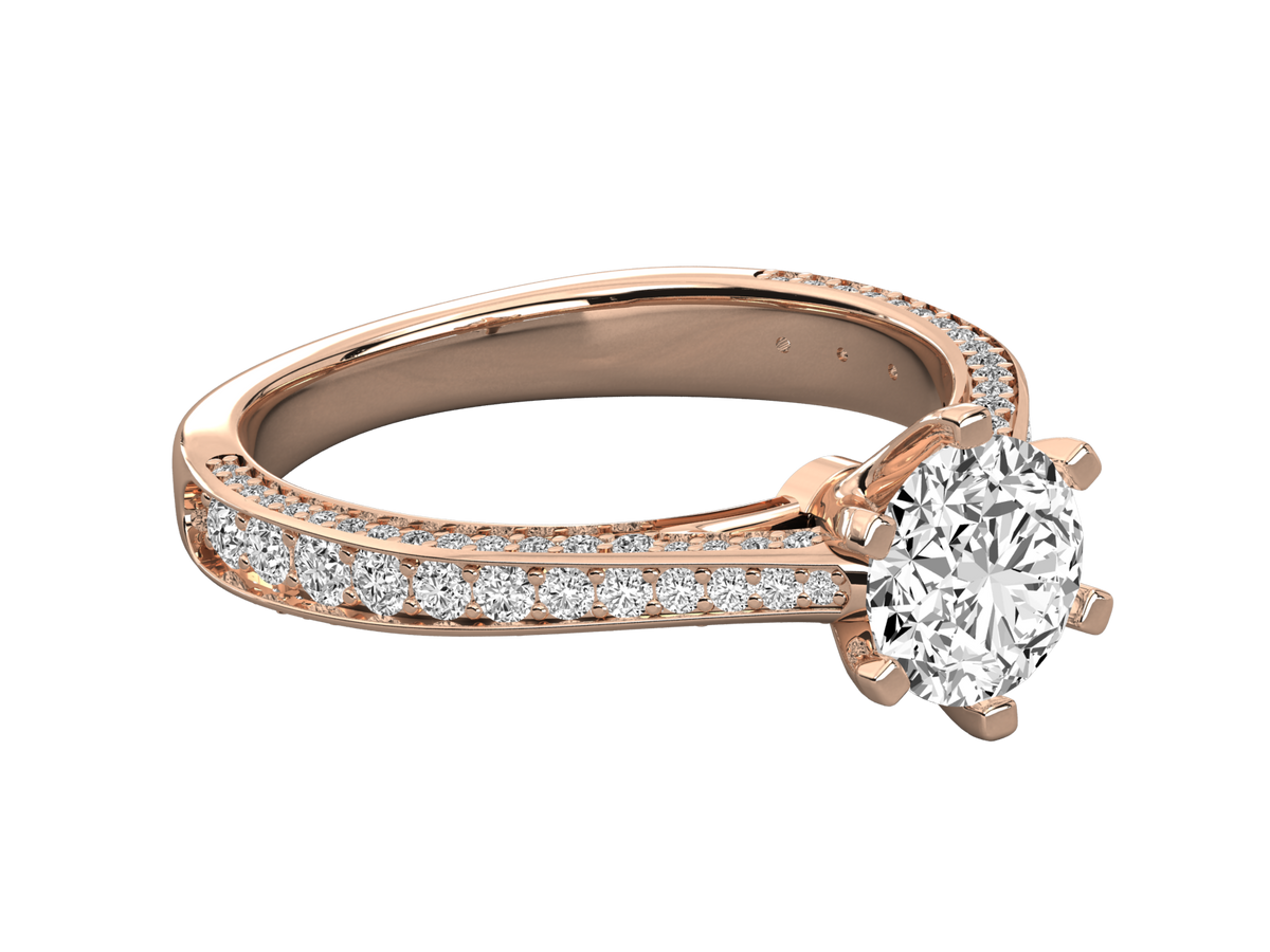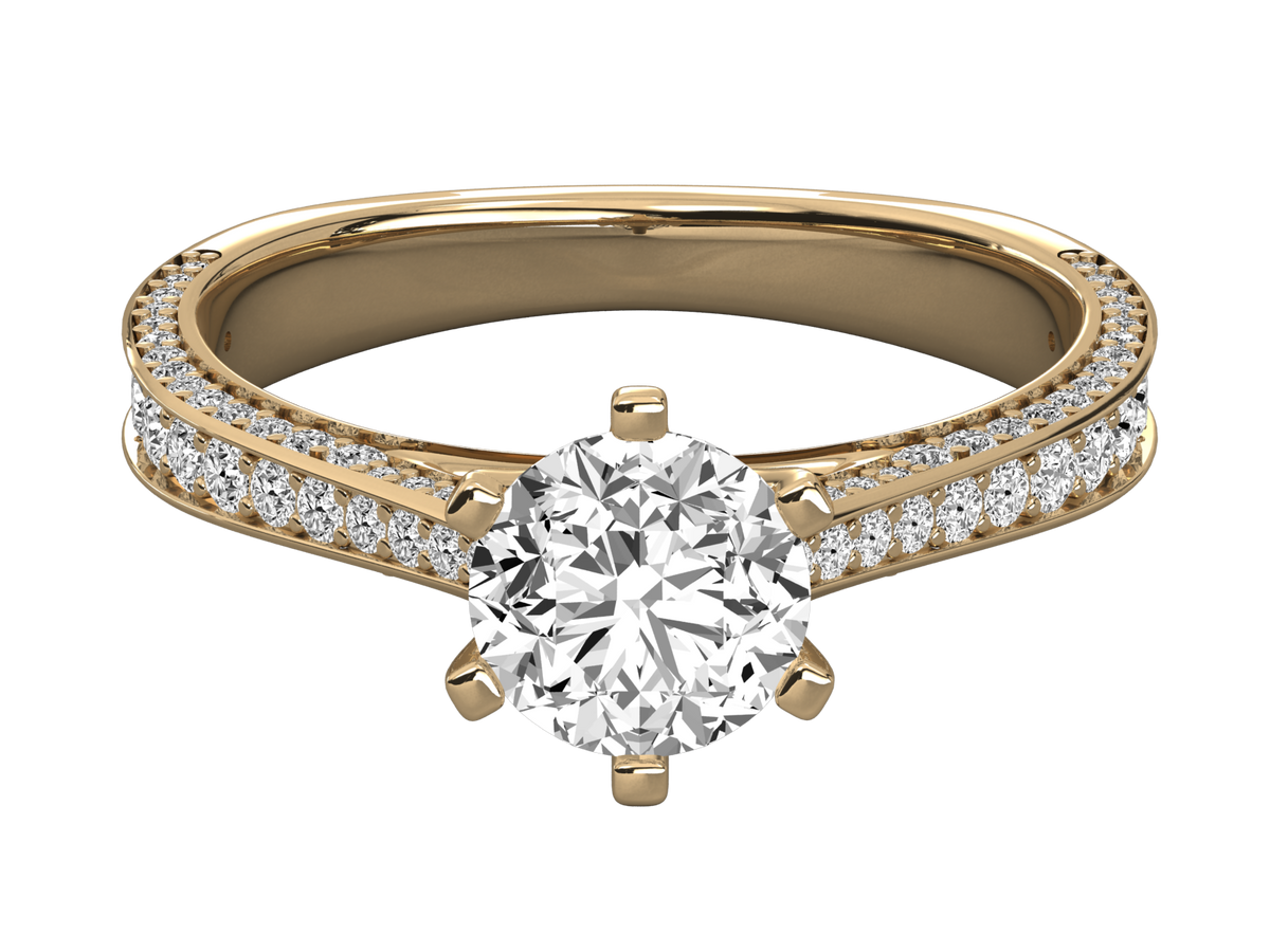 9K GOLD SOLITAIRE ROUND CUT LAB GROWN DIAMOND LADIES BRILLIANT RING.