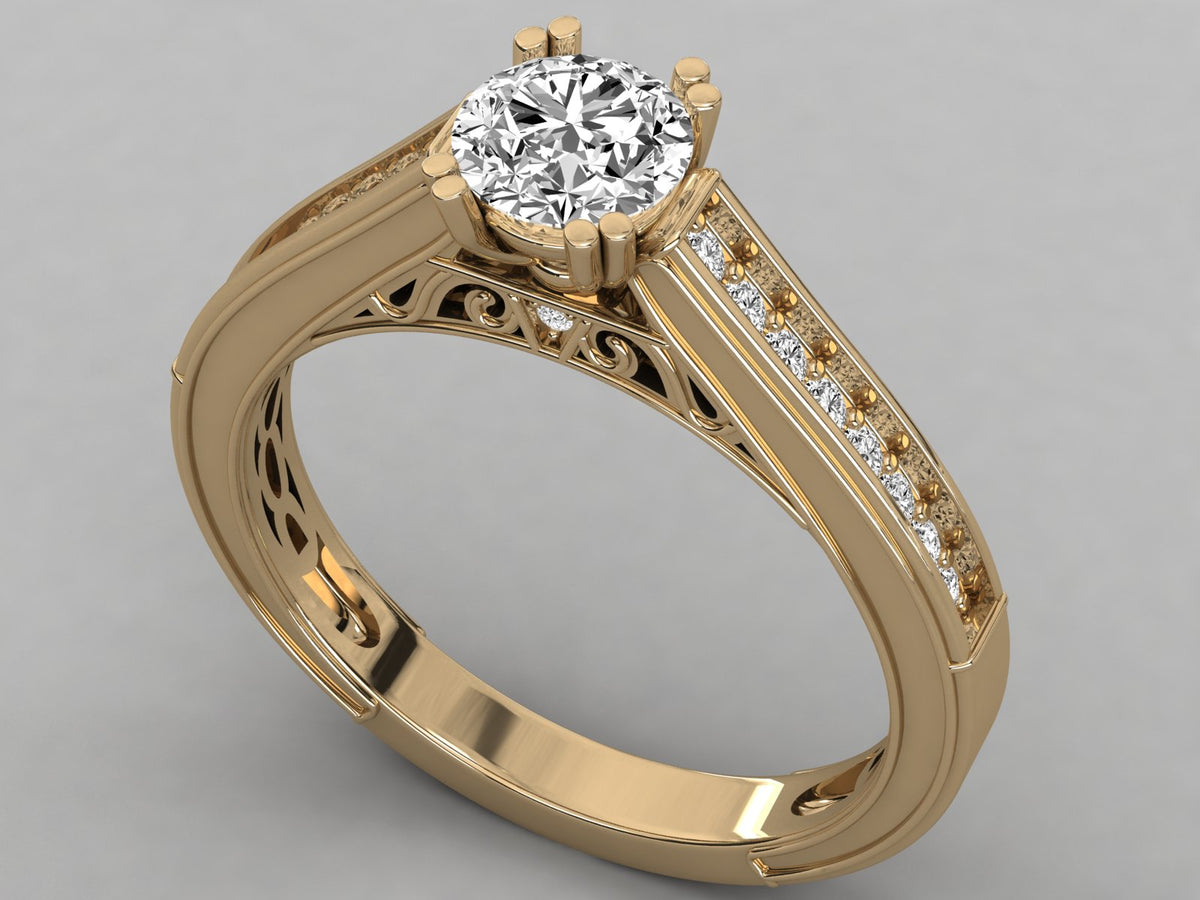 9K GOLD SOLITAIRE ROUND CUT LAB GROWN DIAMOND LADIES BRILLIANT RING.