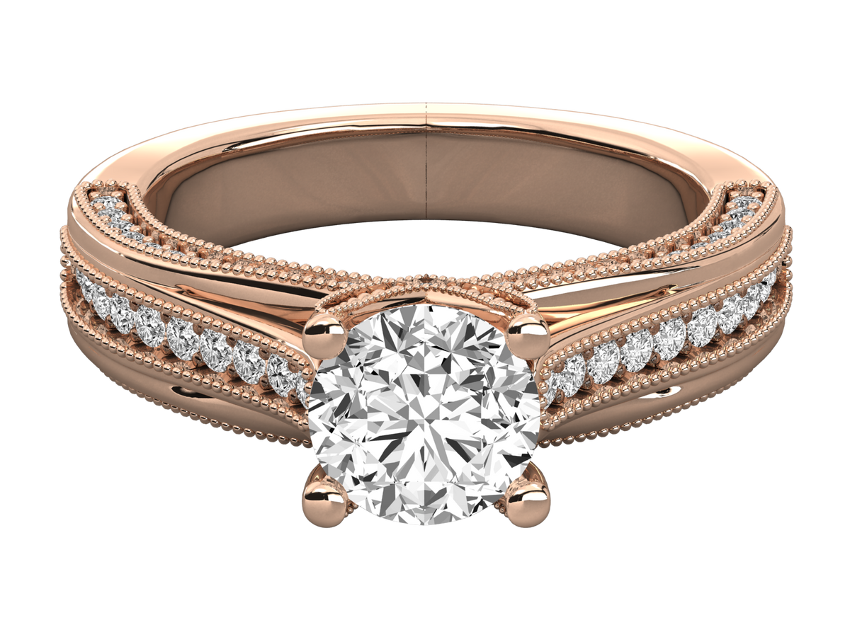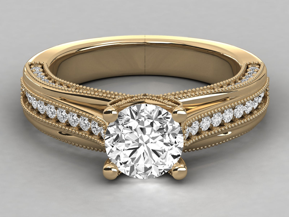 9K GOLD SOLITAIRE ROUND CUT LAB GROWN DIAMOND LADIES BRILLIANT RING.