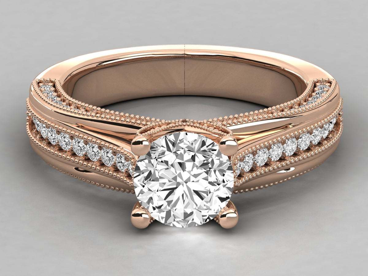 9K GOLD SOLITAIRE ROUND CUT LAB GROWN DIAMOND LADIES BRILLIANT RING.