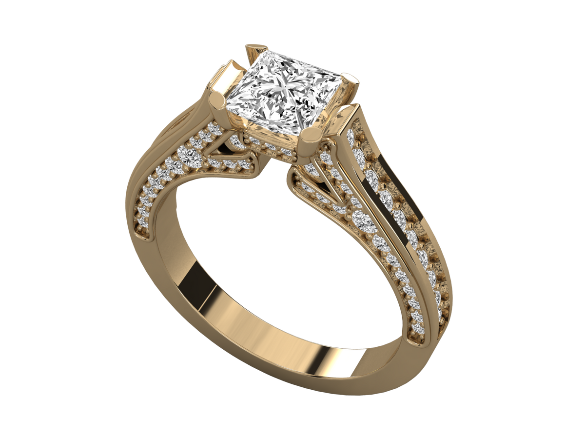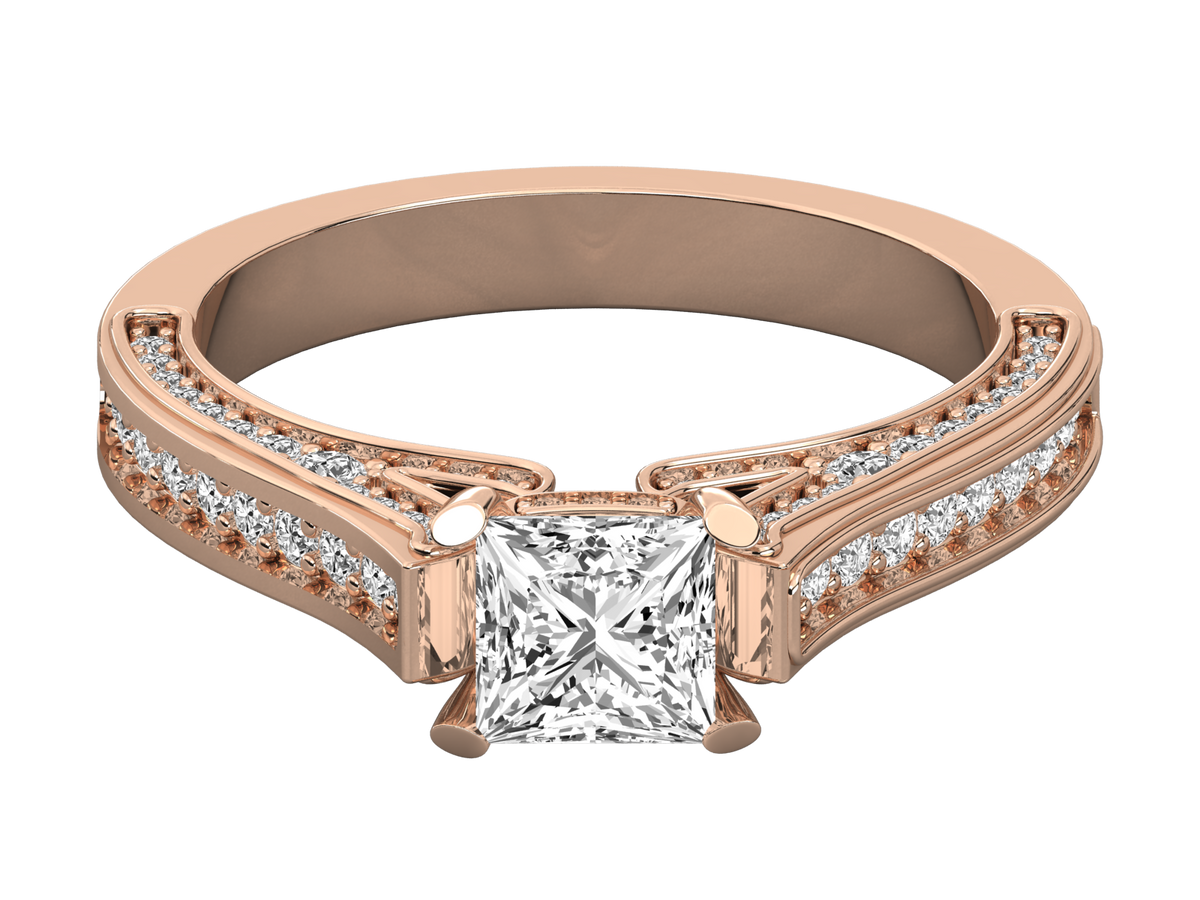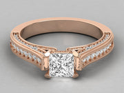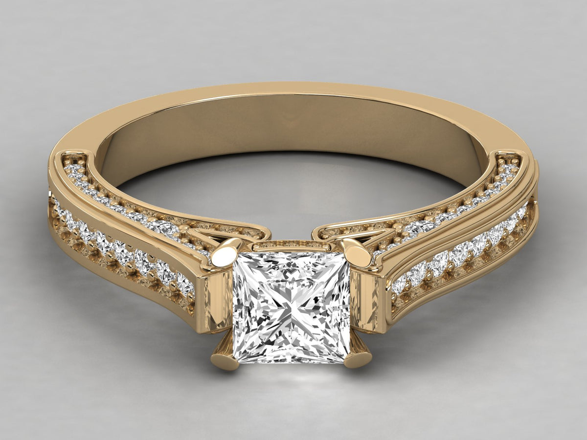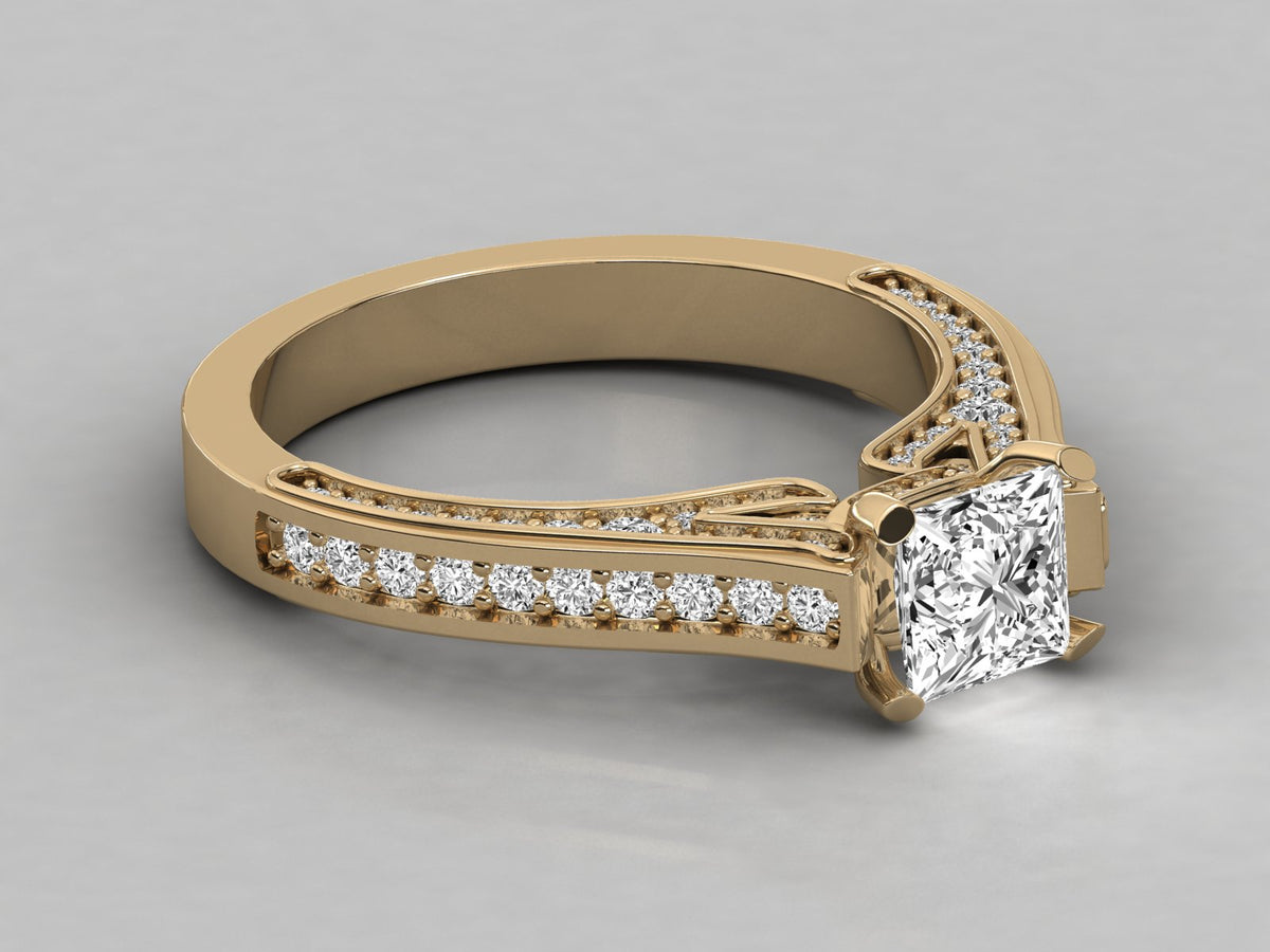 9K GOLD SOLITAIRE ROUND/ PRINCESS CUT LAB GROWN DIAMOND LADIES BRILLIANT RING.